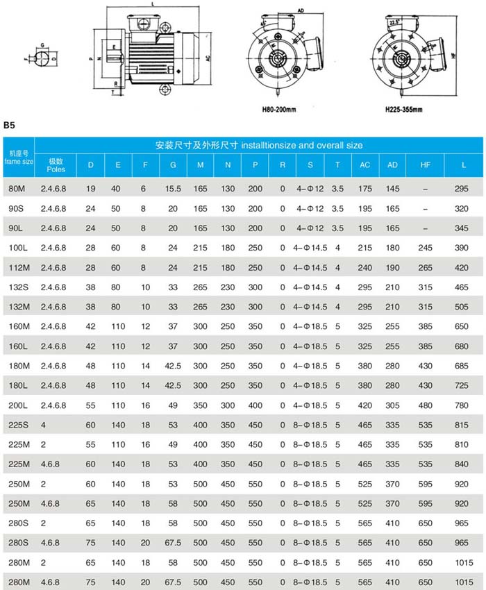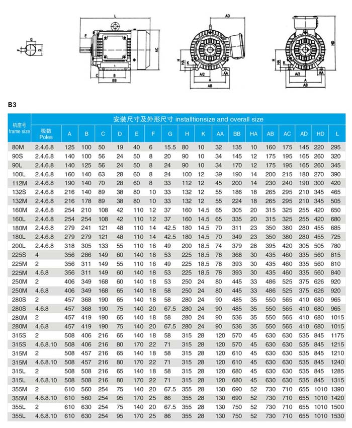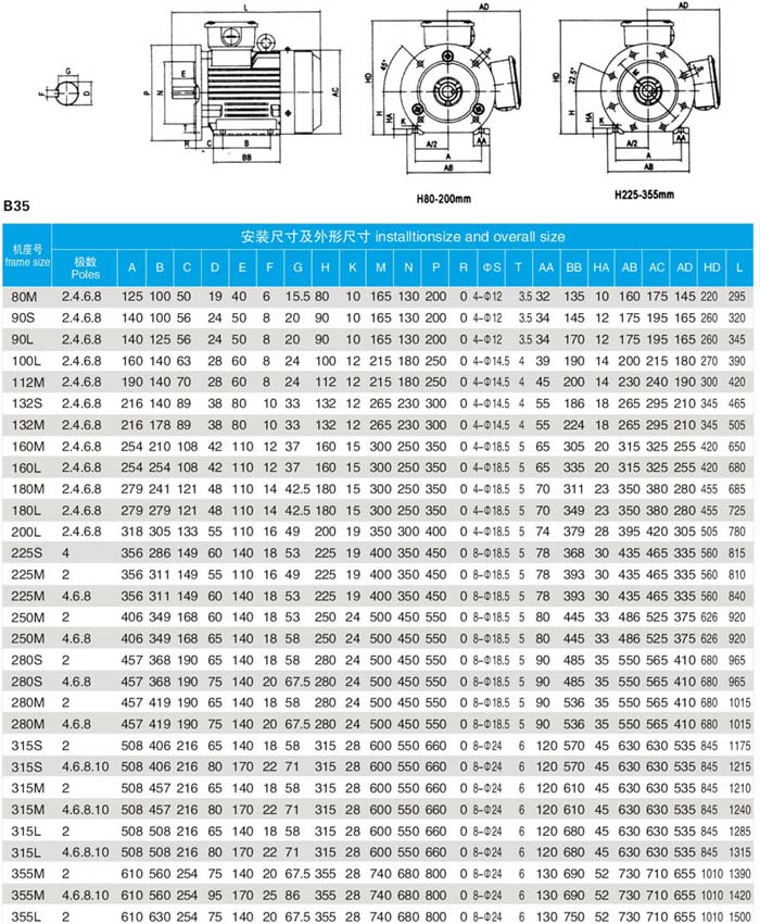 軸承:H63~H160mm機座軸承采用兩面帶密封圈的全封閉軸承,使用維護方便,嚴格控制軸承裝配及各部件加工公差,有效地抑制了電機運行時的振動和噪聲。為使電機安全可靠運行,中心高160~225機座號的電機在結構上考慮了不停機注油裝置的位置,中心高250及以上機座號的電機可設置不停機注油裝置。